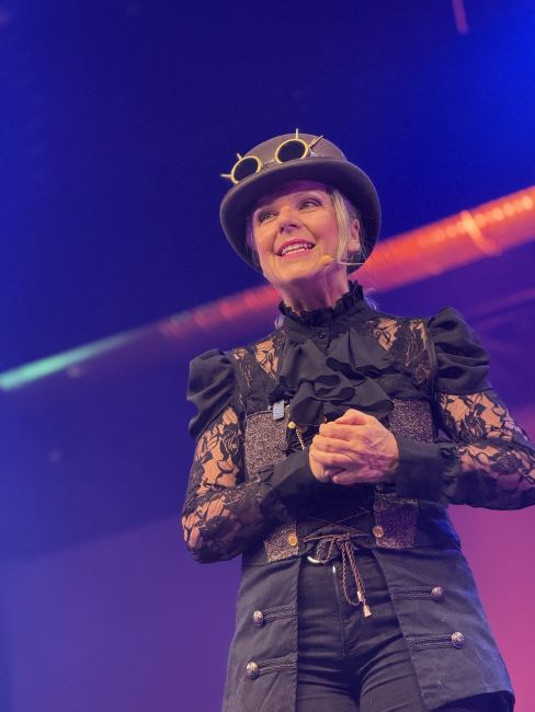 Sabine Schief ist Kabarettistin, Entertainerin und Herzhumoristin mit Leib und Seele. Seit über 30 Jahren begeistert sie mit ihrem schrägen Blick auf das Leben – und das im wahrsten Sinne des Wortes! Ihre Geschichten sind so knusprig wie eine echte schwäbische Brezel: außen bissig, innen herzlich, bestreut mit dem Salz des Lebens. Sie erzählt von Frauen, die auf Highheels feststecken, Männern, die niemals nach dem Weg fragen, und von ihrer wunderbar verrückten Großfamilie, die garantiert „was an der Waffel" hat. Mit Charme, Wortwitz und treffsicherer Beobachtungsgabe nimmt sie ihr Publikum mit auf eine Achterbahnfahrt durch die Tücken des Alltags – mal mit Tiefgang, mal herrlich überdreht, aber immer zum Schieflachen. Ob als Kabarettistin, Moderatorin oder Rednerin – wenn Schiefs Gosch erst mal läuft, gibt's kein Halten mehr. Schwäbisch, spritzig, und immer mit einer Portion Schokolade in der Tasche: Denn wer Schief heißt, kann nur Schräges tun.